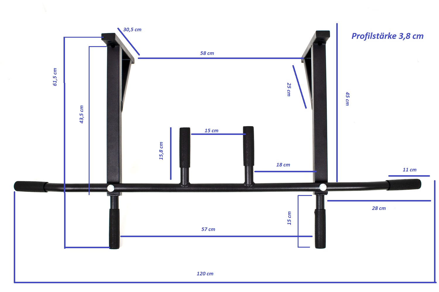 - Die Klimmzugstange bietet 6 verschiedene Griffweiten bzw. Stellungen.