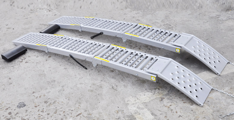 Die AREBOS Auffahrrampen sind ideal zum Verladen von Motorrädern, Rasenmähern, Motorollern, Mopeds, Baumaschinen usw. geeignet. Die integrierte Sicherheitskette verhindert das Verrutschen der Rampe beim Verladen.