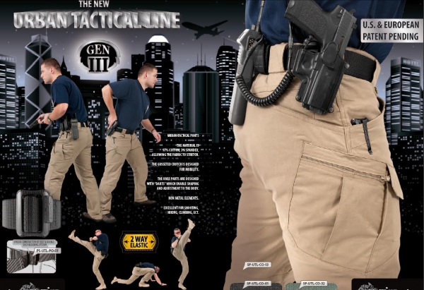 UTP® (Urban Tactical Pants®) were designed as a ‘mid profile' model, which means that they look less like a uniform-type pants like BDU, ACU, SFU™, CPU™ or M65, but at the same time the UTP® provide a greater functionality in comparison with typically civilian/low profile clothing intended for carrying a weapon and equipment in a discrete manner.