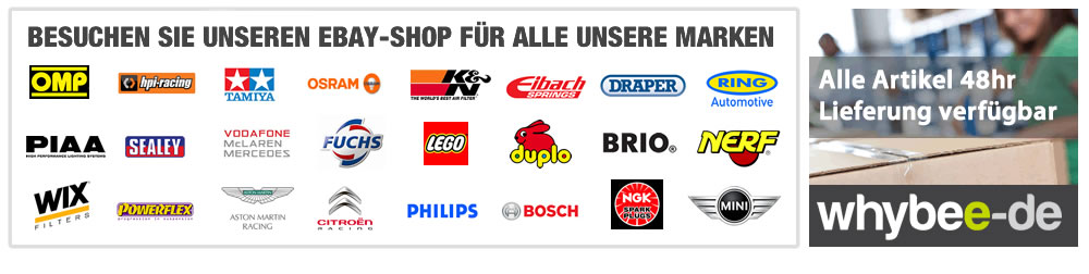 Whybee ist der zugelassene und offizieller distributor und offizieller genehmigte online-shop fur grosse marken einschließlich OMP, K&N, HPI, NGK, TAMIYA, LEGO, SEALEY, OSRAM und viele andere. Wir sind spezialisiert in der Lieferung von hochwertigen Marken zu günstigen Preisen.