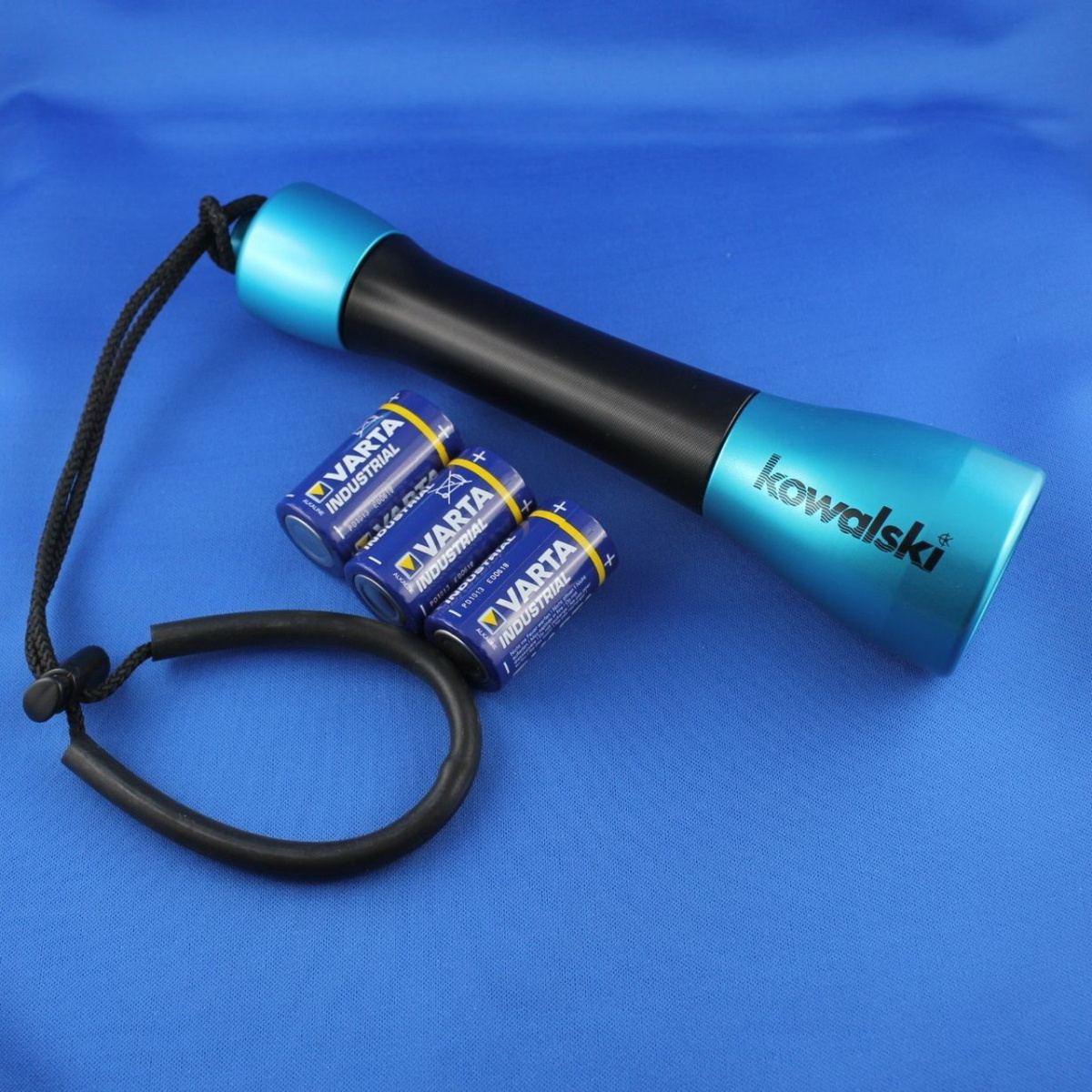 KurzbeschreibungDie mini-X-LED Die Kowalski LED Taucherlampe ist ein Leichtgewicht: Mit einer Länge von nur 231 mm und einem Gewicht von 370 g (ohne Batterien) findet sie überall Platz und überzeugt mit einer Gesamtbrenndauer bis zu 16,5 Stunden. Diese Lampe mit ihrem Breitstrahler (80° Flood) und einer Beleuchtungsstärke von circa 1.000 Lux ist sie nicht nur unter Wasser, sondern auch über Wasser eine perfekte Allroundlampe. Sollte die Batterie einmal leer sein, gibt es in jedem Supermarkt oder Baumarkt Nachschub. Bei Bestelleingang bis 14 Uhr versenden