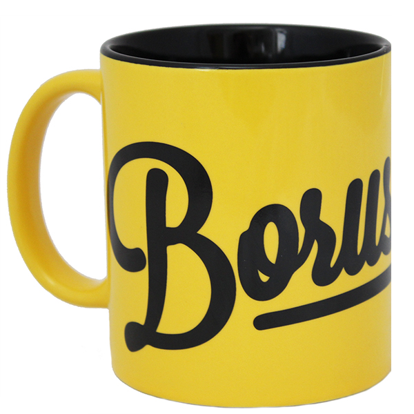 BVB Borusse Tasse. 15701400. BVB Tasse. BVB Becher. Motiv Borusse. Inhalt ca. 0,3 Liter. Farbe schwarz und gelb. Material Keramik. Mikrowellengeeignet und spülmaschinenbeständig. Abmessungen in der Höhe ca. 9,5 cm und im Durchmesser ca. 8 cm. Diese BVB Tasse Borusse aus dem Fussball Fanshop 24, dem BVB Shop, ist ein immer wieder aktueller und auch praktischer BVB Fanartikel für den kleinen und für den großen BVB Fan. Ein BVB Lizenzartikel der besonderen Art. Die BVB Tasse Borusse präsentiert sich in einer ansprechenden Optik verbunden mit einem immer wieder aktuellen Design. Ein praktischer BVB Fanartikel für die ganze Familie der viel Spass und viel Freude bereiten kann. Mit diesem nicht unbedingt klassischen BVB Becher kann der Borussia Dortmund Fan im Büro, in der Werkstatt oder wo auch immer dieser sich gerade befinden sollte ein Zeichen setzen und dort einen bleibenden Eindruck bei anderen Menschen hinterlassen. Im Motiv präsentiert sich diese BVB Tasse Borusse mit dem Logo vom Verein in der ganzen Pracht und Herrlichkeit verbunden mit dem großen Schriftzug Borusse. Imposant und eindrucksvoll! Damit sollte eigentlich schon die gute Laune am Morgen garantiert sein! Abgerundet wird das Design dabei auch noch durch eine angesagte und schwarzgelbe Optik. Ein offizielles BVB Lizenzprodukt. Ideal zum Trinken von Kaffee, Tee, Milch oder auch von anderen Erfrischungsgetränken. Ein BVB Fanartikel der in keinem BVB Haushalt fehlen sollte und der das Herz eines jeden BVB Fans erwärmen und auch höher schlagen lassen kann. So will der BVB Mann in Dortmund trinken. Der Inhalt von diesem BVB Kaffeebecher Borusse beträgt ca. 0,3 Liter. Eine ansprechende und passende Größe die es dem BVB Fan ermöglicht eine ausreichende Menge an Flüssigkeit in sich aufnehmen zu können. Das Material von dieser BVB Borussen Tasse ist Keramik. In den Abmessungen präsentiert sich diese Borussen Tasse mit einer Höhe von ca. 9,5 cm, mit einem Durchmesser gemessen ohne den Henkel von ca. 8 cm und mit einem Durchmesser gemessen mit dem Henkel von ca. 12 cm. In der Pflege ist diese Borussen Tasse mikrowellengeeignet und auch spülmaschinenbeständig. Eine Handspülung ist allerdings ratsam und könnte die Verlängerung der Lebensdauer bewirken. Ein offizielles BVB Lizenzprodukt. Die BVB Borussen Tasse ist neu und in einem Geschenkkarton originalverpackt.