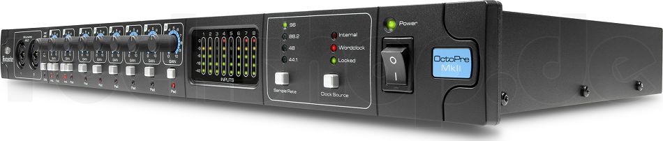 Die Kombination aus den preisgekrönten Saffire PRO PreAmps, hochwertiger Digital-Umwandlung und Jet PLL Jitter-Eliminations-Technologie macht OctoPre MkII zum derzeit am besten klingenden Multikanal-Mic-Preamp seiner Klasse. Der Digital-Ausgang erlaubt Nutzern, alles aus ihren oft vernachlässigten ADAT-Eingängen herauszuholen - ideal, um die Zahl von Mic-Preamps von Interfaces wie dem Saffire PRO 24 noch zu erhöhen. Einfach OctoPre MkII mit dem ADAT-Eingang des Audio-Interfaces verbinden - schon entsteht eine hochwertige Multikanal-Recording-Lösung.