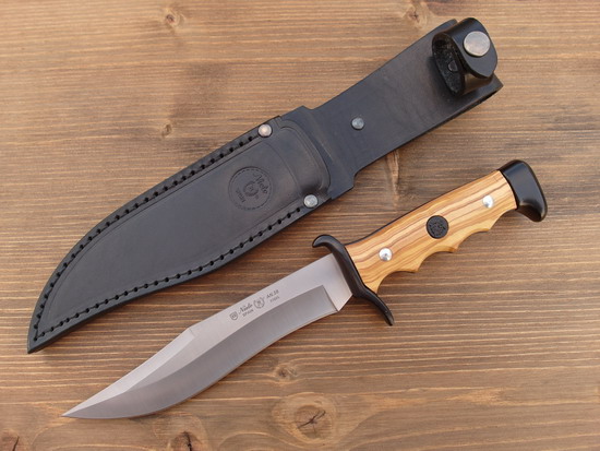 Nieto Nieto Gürtelmesser, Stahl AN.58, Klinge 18 cm, Olivenholz, Aluminium, Lederscheide 122518