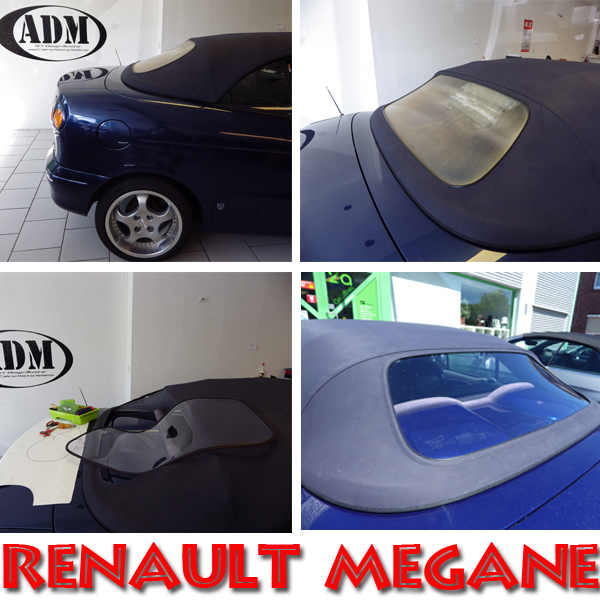Renault Megane Cabrio Heckscheibe mit Reissverschluß in klar ohne Tönung Bj (1998-2002)Die Scheibe ist wie das Original, 1mm stark mit Reißverschluss incl.Einbaumaterial.Durch die patentierte Verarbeitung der Firma ADM zu 100% wasserdicht. Die in Deutschland gefertigten Cabrio Heckscheiben werden weltweit von uns vertrieben und sind Weltmarktführer. MADE IN GERMANY Produktion und Verarbeitung Die Scheiben werden mit einer CNC Schneidanlage zugeschnitten und nach patentiertem Verfahren gebaut. Das Folien-Material ist von RENOLIT, weltführender Hersteller von PVC Scheiben für die Autoindustrie. Mit über 6.000 produzierten Heckscheiben im Jahr ist die deutsche Firma #1 und Marktführer. Alle Scheiben werden mit wasserabweisenden Faden vernäht und zusätzlich verklebt, somit wird optimaler Halt und Dichtigkeit garantiet. Unsere Firma Art Design Munster