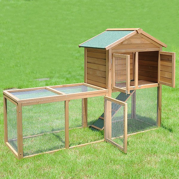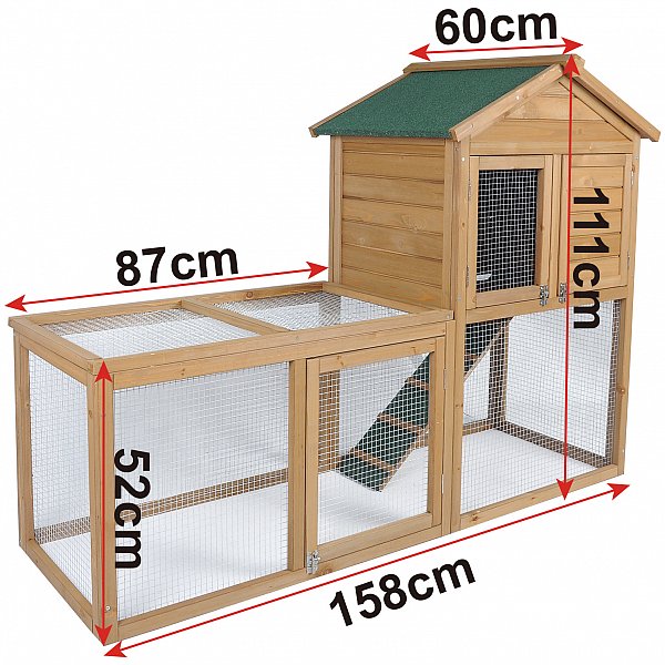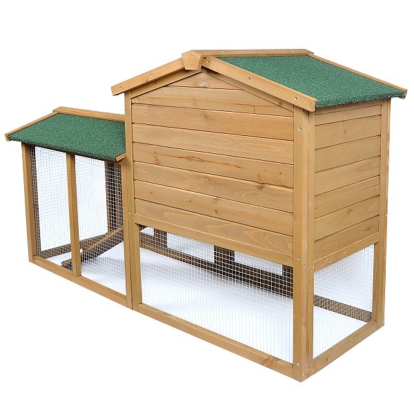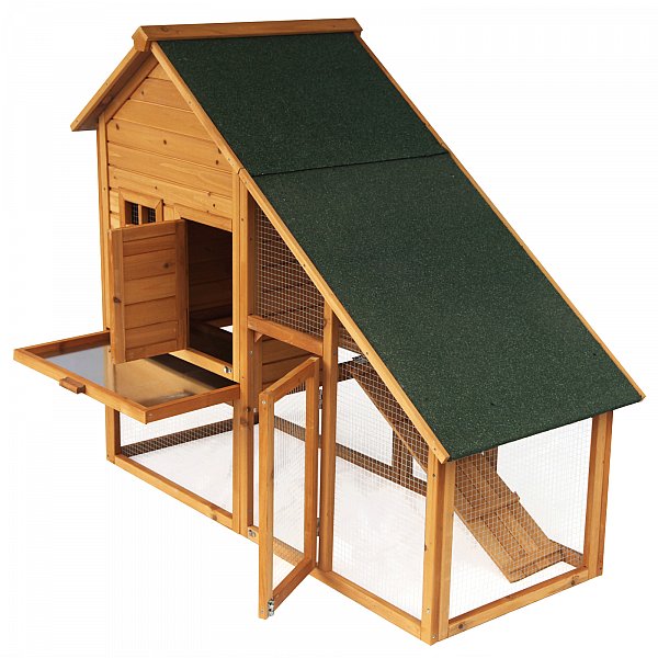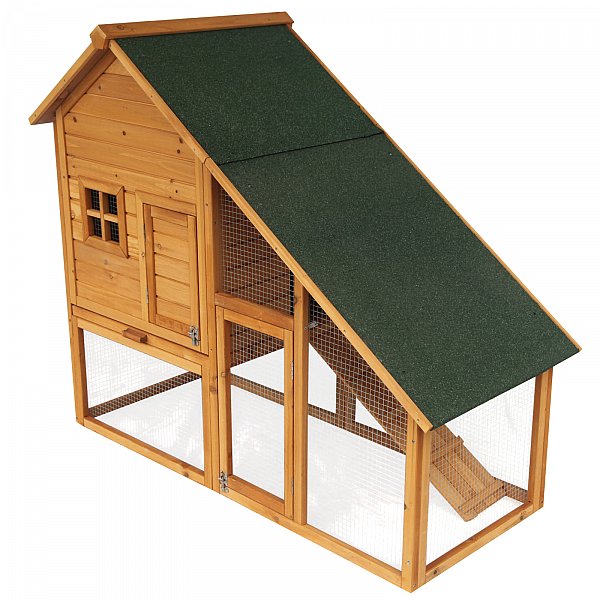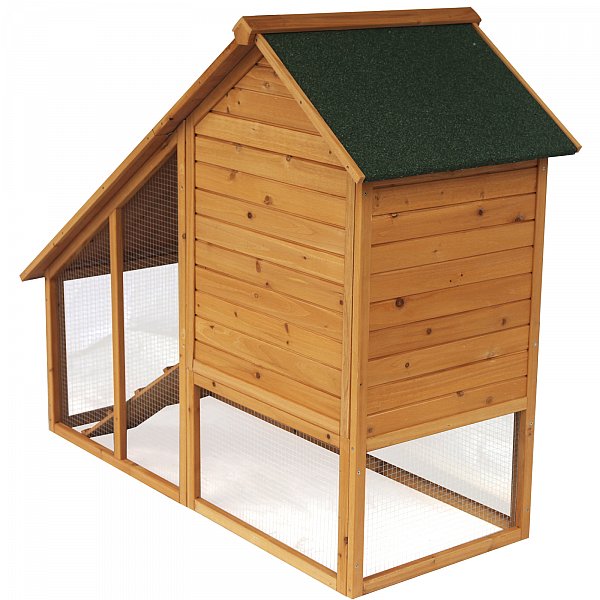 >> Auf dem Wetterfesten Dach ist der Stall mit grüner Teerpappe bezogen >> Das große Freilaufgehege sorgt für eine Artgerechte Tierhaltung.