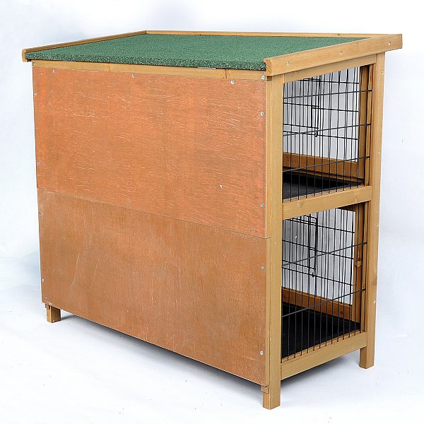 >> Auf dem Wetterfesten Dach ist der Stall mit grüner Teerpappe bezogen >> Die aus Holz verzinkte Schublade, welche über die ganze Breite des Käfigs reichen, erleichtern die Reinigung.