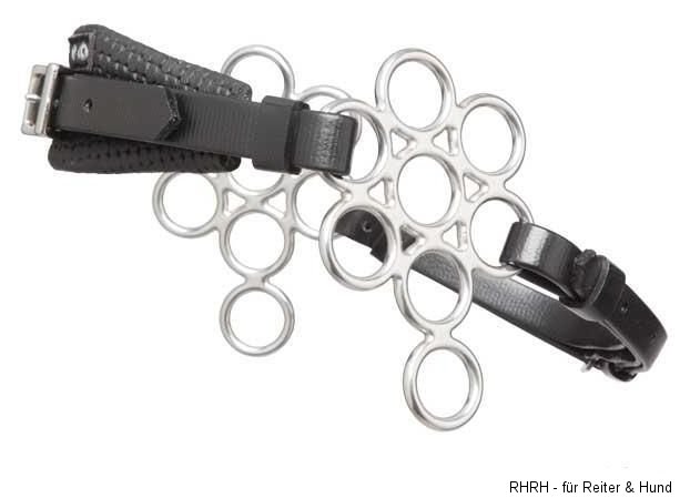 Optisch sehr ansprechende Hackamore, die wesentlich mehr Verstellmöglichkeiten in der „Schärfe“ der Einwirkung hat, als eine herkömmliche Hackamore.
