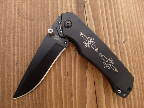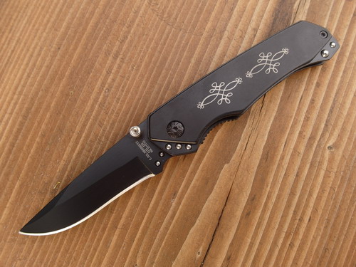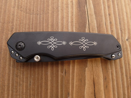 Herbertz Einhandmesser, Stahl AISI 420, schwarz beschichtet 277710 Mit einer edel anmutenden schwarzen Beschichtung und der blumigen Verzierung am Heft beweist dieses Herbertz Einhandmesser guten Geschmack. Das Messer ist komplett aus rostfreiem Stahl AISI 420 gefertigt und lässt sich mittels Klingenknopf und Liner Lock bedienen.