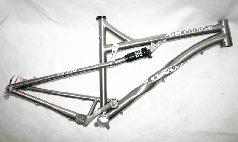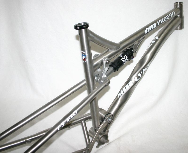 Lynskey Performance Titan Pro-650b Full Suspension 140 Frame for 27.5inch wheels Das Lynskey Pro650b wird exklusiv für Sie in den USA hergestellt. In dem Familienbetrieb werden die Titaniumrahmen sorgfältig und präzise von Hand geschweißt. Der Rahmen ist nicht nur ein Hingucker, die Funktion ist hervorragend. Durch die Anordnung des Hauptlagers vor dem Tretlager ist das Fully sehr sensibel und hat kaum Antriebseinflüsse. Die Steifigkeit ist für ein Titanrahmen verblüffend hoch. So steht dem All Mountain vergnügen nichts im Wege. Bei diesem Fully gibt es eine Technische Feinheit: Das lager am Ausfallende wurde eingespart, dafür sind die Sitzsreben leicht flexend nach oben, dadurch ist der Rahmen steif und erhält eine Progression, zusammen mit dem Speziell auf diesen Rahmen abgestimmten X-Fusion Dämpfer ergibt es eine wirklich überragende Hinterbaufunktion./p>