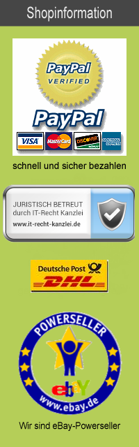 Bitte geben Sie bei der Zahlung unbedingt Ihren eBay-Namen an, damit Ihre Zahlung sofort ausgelesen werden kann und somit ein sofortiger Versand möglich ist.