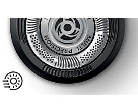 Rasieren Sie sich schnell und gründlich. Unser MultiPrecision-Klingensystem hebt alle Haare an und schneidet diese sowie verbleibende Stoppeln in wenigen Zügen ab. | |