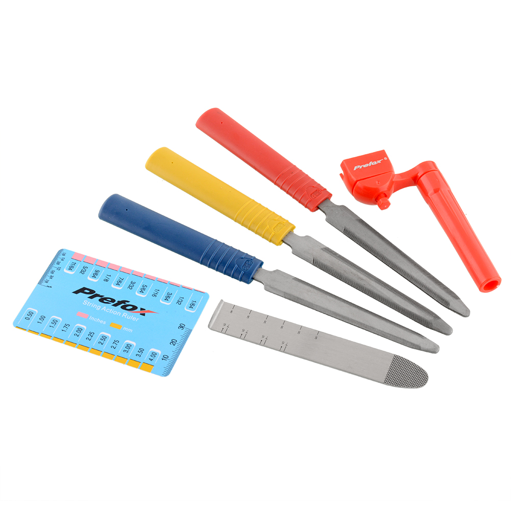 Description: 100% Brand new and high quality Tool set for guitar set-up, with pouch: topnut files, ruler, string winder, action table Guitar set up kit Contains all you need to mount your strings properly Three double edged topnut files. Stainless steel ruler, protect the fingerboard during filing. String action table, find the correct string height easily String winder with detachable handle, for hand or machine use. Enclosed a collectable packet, convenient for package, prevent the loss of tools. Perfect for DIY guitarrists and Luthiers.
