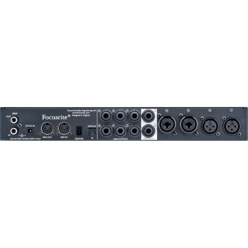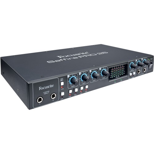 Focusrite Saffire Pro 26 Das Focusrite Saffire Pro 26 ist ein hochwertiges Audio-Interface für professionelle Studioanwendungen. Es kann mittels Fire-Wire und auch über die Thunderbolt-Schnittstelle Ihrem Computer kommunizieren. Die 18 Eingänge und 8 Ausgänge wandelen die Signale in höchster Focusrite-Qualität, die vier prämierten und hochwertigen Focusrite Mikrofon-Preamps sind der ideale Partner für Ihre Vocal-Aufnahmen. Die interne Signalverarbeitung ist hochauflösend bei 24Bit/96kHz. Zusätzlich ermöglicht die mitgelieferte Saffire MixControl-Software ein flexibles Routing aller Kanäle und die stabilen Treiber sorgen für einen zuverlässigen und störungsfreien Betrieb. Saffire PRO 26 beinhaltet ein umfangreiches Software-Paket: Neben Ableton Live Lite befinden sich auch die professionellen Focusrite Midnight- und Scarlett-Plug-Suite, Novations virtueller Synthesizer BassStation und 1 GB Samples von Loopmasters im Lieferumfang. Features: