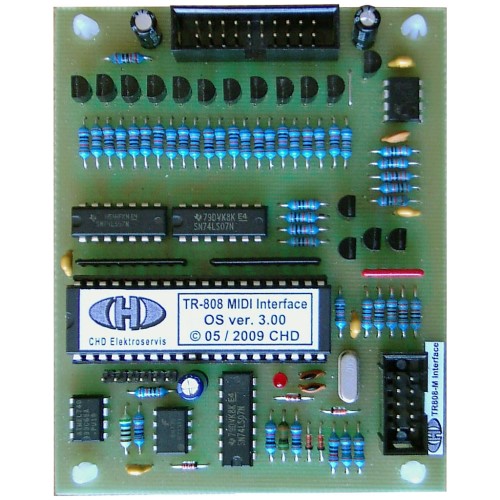 CHD Elektroservis TR808-M - Roland TR-808 MIDI Interface Roland TR-808 Einbau MIDI Interface - neue Version 3.2 - mit Features, die bisher noch nie in einem TR-808 MIDI Interface verfügbar waren. The TR-808 MIDI retrofit enables your Roland TR-808 to be synchronized with other MIDI devices and work like polyphonic velocity sensitive MIDI drum expander. More over all original features of the TR-808 are not changed. It offers features never before available on any MIDI interface for TR-808. Installation of all MIDI interface parts is very easy and non-destructive - it is not necessary to drill any holes in the vintage instrument. All changes can be replaced without visible changes. The optical appearance of the TR-808 remains the same after the installation and it is possible to remove the interface at any time. Features:
