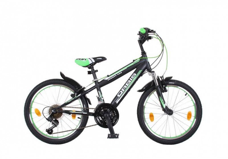 Sattel und Lenkstange höhenverstellbar Vorder und Hinterradbremse Shimano Revo 18-Gang Drehgriffschaltung 18 Shimano Gang Kettenschaltung 85 % vormontiert Reifengröße: 20" Farbe:Schwarz-Grün LED LAMPE für vorne und Hinten Schutzblech vorne & hinten Schnellspannverschlusss Sattel