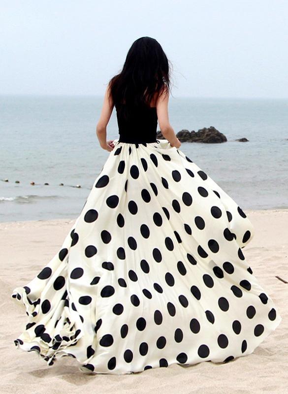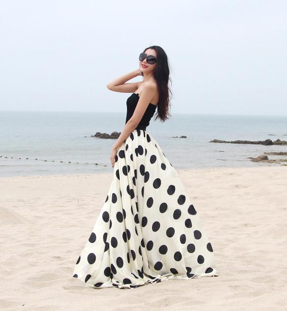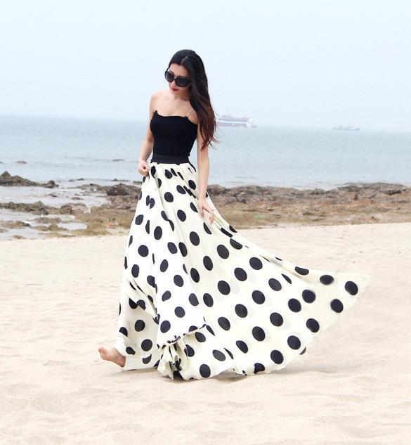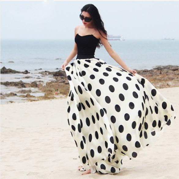 Low Price Fashion Women's Dot Print Floor-length Skirt Chiffon Long Maxi Skirt Dress Hot