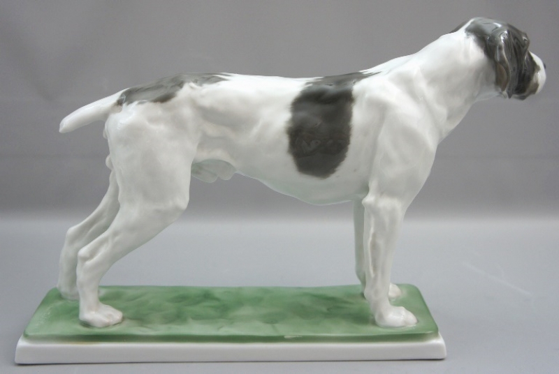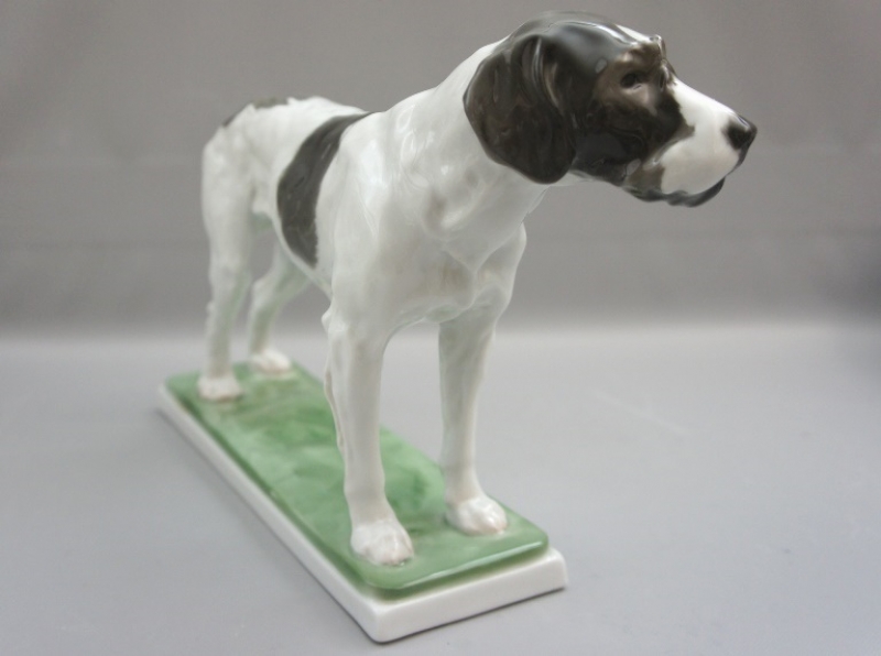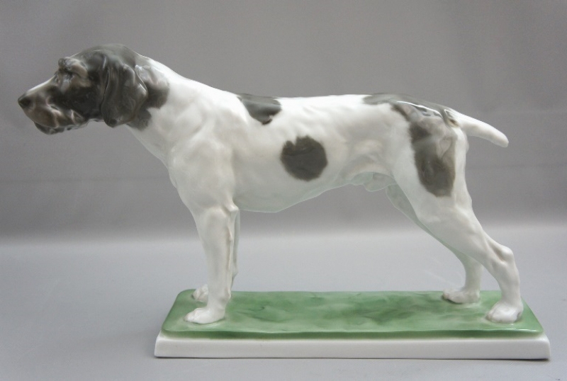 Wunderschöne Rosenthal Porzellanfigur Pudelpointer Jagdhund. Entwurf von W. Zügel. Höhe 20 cm, gesamt länge 31,5 cm, tiefe 7,5 cm. 1 Wahl, sehr guter unrestaurierter und unbeschädigter Zustand.
