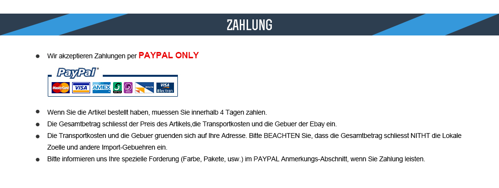 Eigenschaften: Aluminium Seitenständer, sehr robust und langlebig. Große Luftgummireifen rollen sanft über Sand, Kies, und Straße. Die oberen Teile der Seitenständer in die Kajak Boden Speigatts eingesetzt und die EVA-Kissen helfen Kajak zu schützen, während transportiert werden. Die Breite des einzigartigen Crossbar ist einstellbar mit einer Schraube unterschiedliche Platzierung von Speigatts aufzunehmen. Die unteren Seitenständer sind sehr einfach in die Reifen mit zwei Tasten zu installieren. Ein großer Wagen für Sie Ihr Kajak zu transportieren. Technische Daten: Material: Aluminium + Gummi Zuladung: 50 kg Reifengröße: 26 * 8,5 cm / 10.24 * 3.35in (D * T) Hinterbauständer Durchmesser: 2cm / 0.79in Seitenständer Höhe: 44cm / 17.32in Crossbar Breite: 24 - 42cm / 9.45 - 16.54in Gewicht: 2,3 kg / 5.07lb Paket-Größe: 54 * 39 * 10cm / 21.26 * 15.35 * 3.94in Paket-Gewicht: 2.733kg / 6.03lb Paketliste: Y2333 1 * Kayak Trolley Hinweis: Bitte erlauben Sie 1 - 2 cm (0,4 bis 0,8 ") Unterschiede wegen des manuellen Maßes, Dank. ![]() ![]() ![]() ![]() Am 21.06.16 hat der Verkäufer die folgenden Angaben hinzugefügt: |