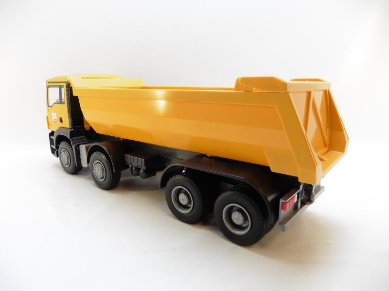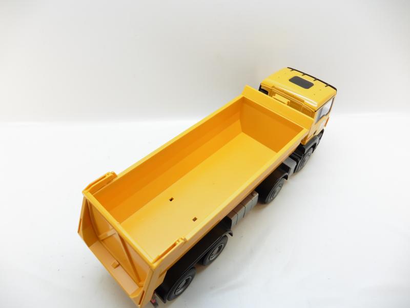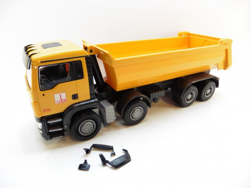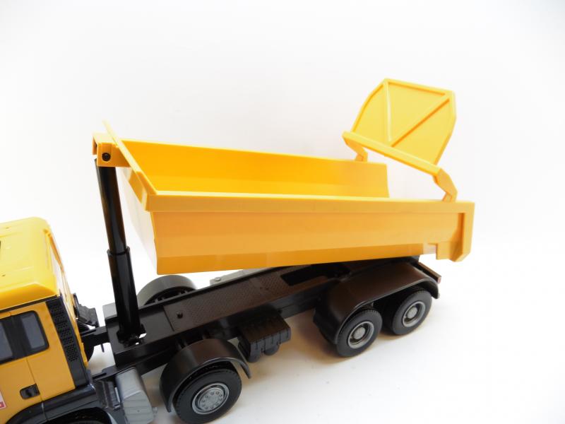 LKW Modell aus Kunststoff - Rundmulde ist beweglich Türen sind nicht zu öffnen Maßstab circa 1:25 Farbe: gelb Länge: ca. 36 cm inkl. 3x Spiegel zum Anstecken