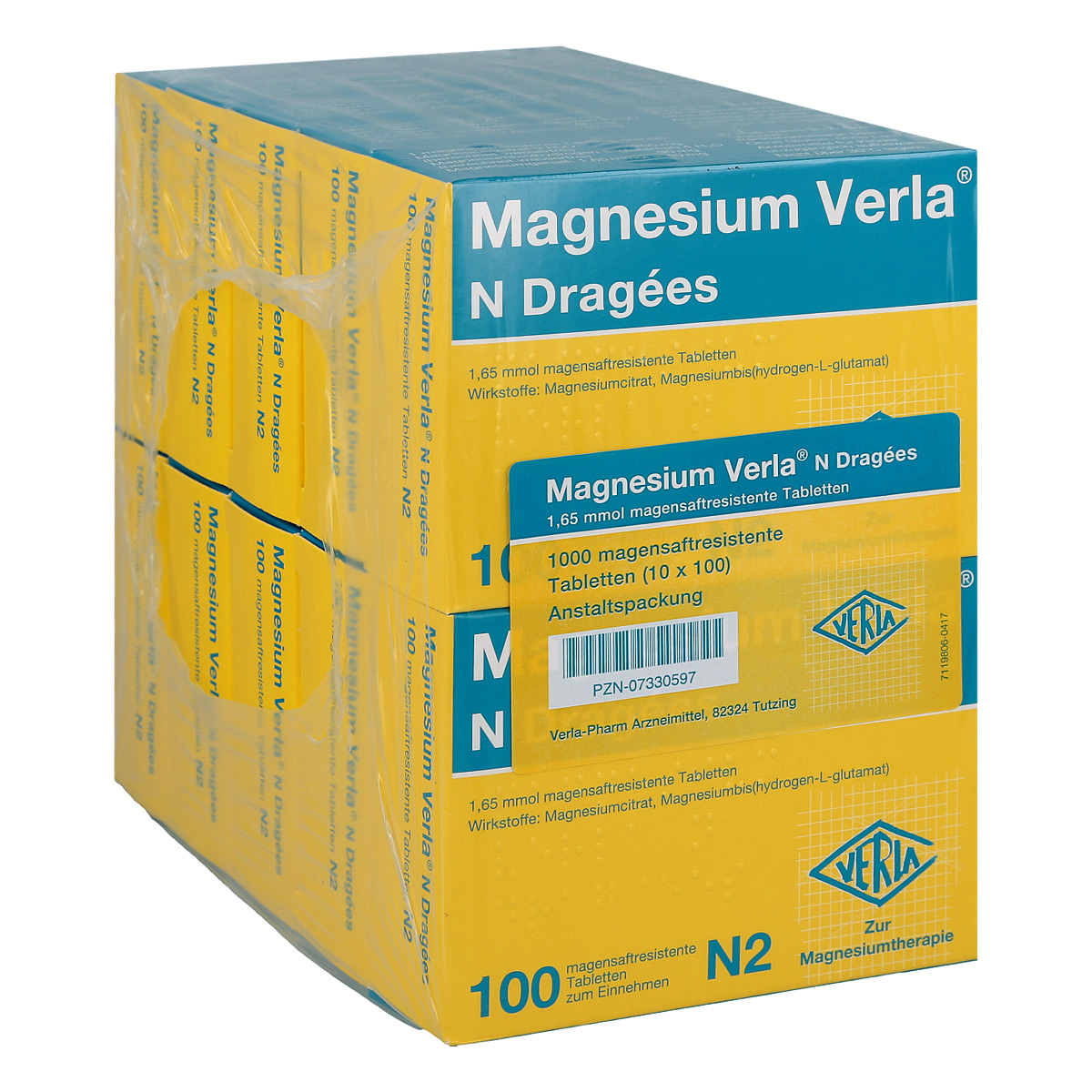 Magnesium Verla N Dragees (Packungsgröße: 10X100 stk) helfen Ihnen, Ihren täglichen Bedarf an Magnesium zu decken. Typischen Mangelerscheinungen wie Wadenkrämpfen und Verspannungen der Muskulatur können Sie so vorbeugen. Magnesium Verla N Dragees (Packungsgröße: 10X100 stk) bieten sich vor allem bei erhöhtem Magnesiumbedarf an, wie er sich während Schwangerschaft und Stillzeit sowie bei Stress, Arbeit, Sport und verdauungsbedingten Aufnahmestörungen einstellen kann.