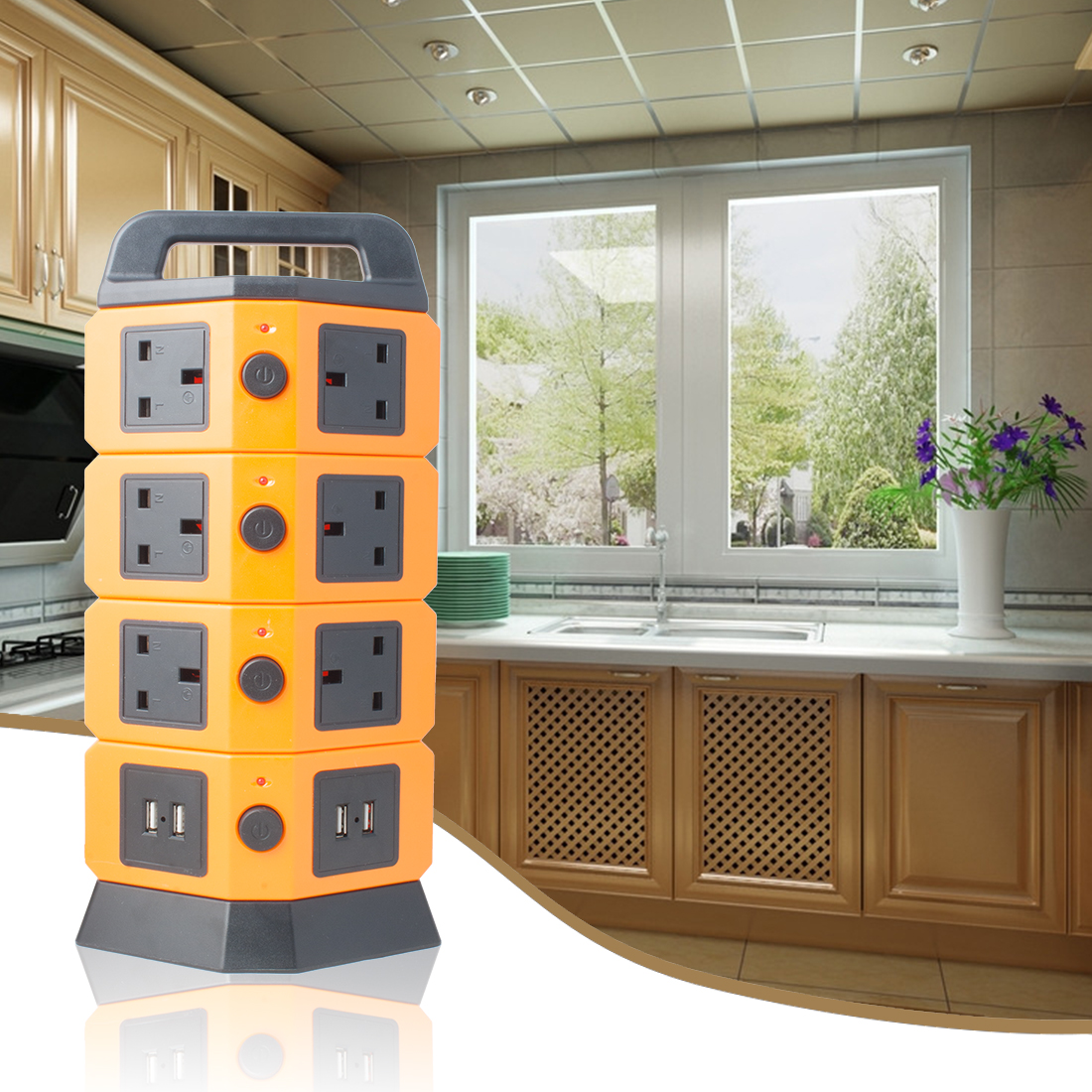 ![]() ![]() ![]() ![]() Descriptions: -USB multi-function power supply will be more satisfied in digital life. It is combined by original power socket(AC) and USB socket(DC). -A tower socket with a USB interface on ground can conveniences to charge many digital products, such as mobile phones, camera, MP3/4 player etc. Connect digital products directly with data cable, and plug in USB port to charge. -It also have mulit power socket for electrical equipments and charger, A thirteen-plug power outlet is suitable to different power plugs in various countries. -The appearance and size are the same as ordinary sockets, and can be easily fixed. Wires design are also the same as ordinary sockets. -It is propitious to hotel, restaurant, home, public places, etc., for the convenience of customers in charging digital products. Features: 1. Vertical Socket was designed with multi-layer types, make up the disadvantage of flat socket space occupied. 2. Independent swich and LED lights diaplay for each layer; 3. Hierarchical structure controls, according to the power demand, to protect the appliance; 4.High-temperature fuse anti-thunder device inside, which can effectively resist high voltage surge of accident damage; 5.With overload protection, to protect the appliance every moment. 6.Can set up several USB ports on the socket as your request, the max output for single port is 2.1A.It can make the cell phone and digital products charging quickly. It is very convenient to satisfy your charging demands in various occasion... Technical Data: Product Material:ABS + Fireproof material Rated Voltage:110-250V Rated Current:13A Rated Power:3250W USB Rated Voltage:3.5V-5V USB Rated Current:2100mA Current Frequency:50-60HZ Length of Cable:2M/ 6.5ft Notice: 1.Do not touch the socket when the hand is wet. 2.Keep away from the children. 3.Do not use it under wet conditions.