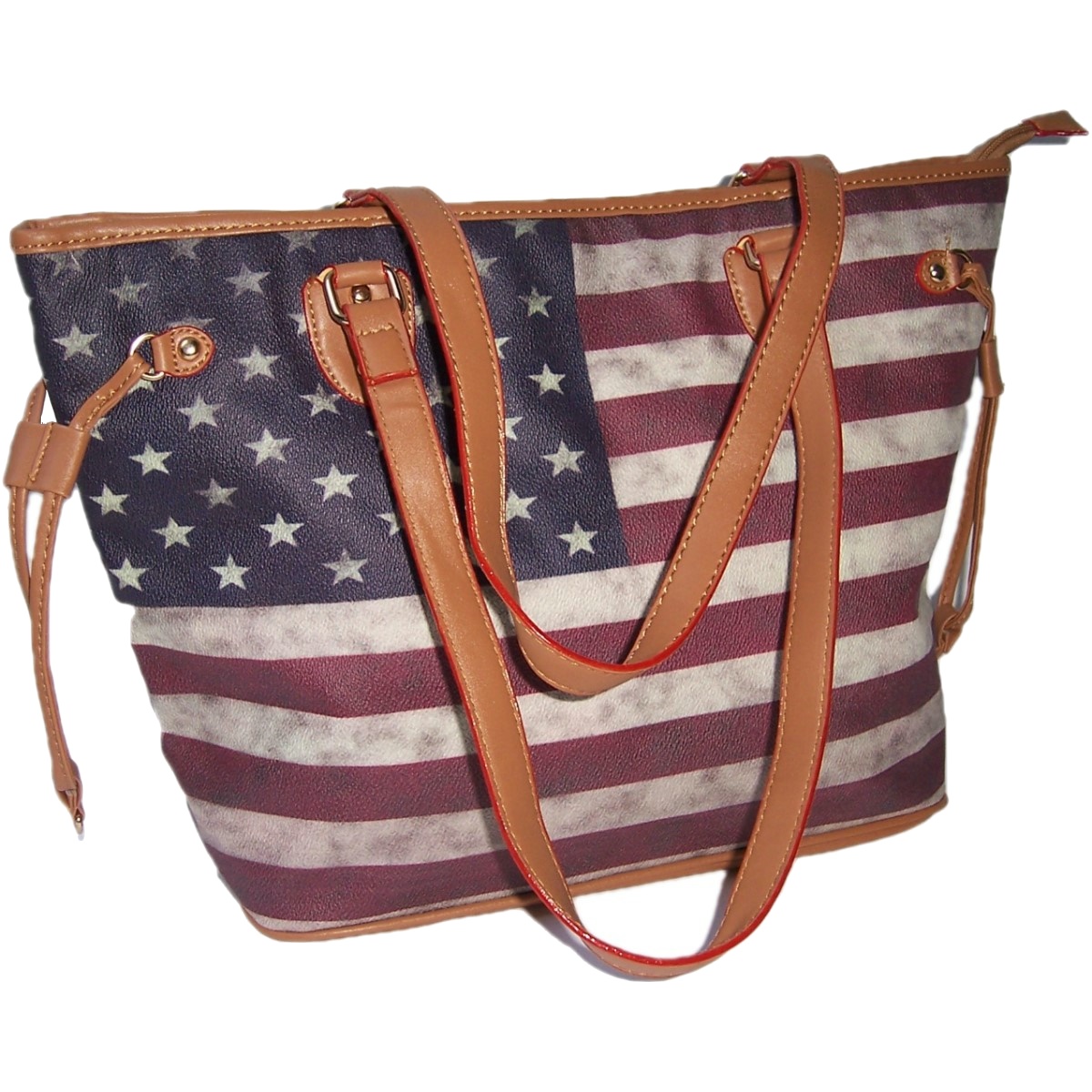 Zeigen Sie Flagge und stellen Sie sich aus verschiedenen Taschen und Geldbörsen ihre Lieblingsauswahl zusammen: Produktbeschreibung Shopper: Design: geräumige Damenhandtasche, Maße: ca. 45 x 30x 16 cm, komplette Höhe mit Griff 55cm Material: bedrucktes Kunstleder im used-look mit beigem Innenfutter, Innen ein großes Mittelfach mit Reißverschuß, seitlich eine Reißverschlußtasche, 1 Steckfach und 1 Einschub fürs Handy verstärkter Boden 32x16 cm, 2 Tragegriffe, je 60cm lang Griffe, seitliche Riemchen und Boden aus Lederimitat in camel, Ösen, Nieten, Zipper in gold NEUWARE