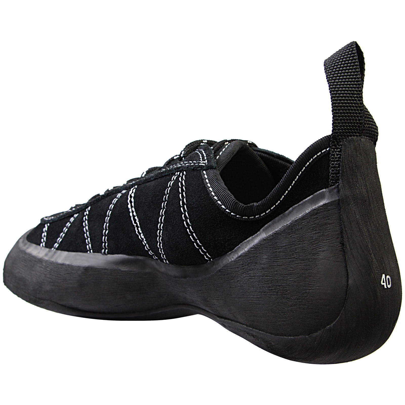 Sportlich und schnell – unser Kletterschuh Black Panther. Er überzeugt nicht nur durch seinen hervorragenden Tragekomfort, sondern auch durch sein elegantes schwarz-weiß-Design. Mit diesem Kletterschuh hat man in jeder Kletterhalle bewundernde Blicke auf seiner Seite. Black Panther ist aus Leder gefertigt, die Zunge verfügt über ein Futter und durch seine Schnürung läßt er sich besser an jede Fußform anpassen. Durch den griffigen Gummi der Klettersohle ist der perfekte Halt auf kleinen Tritten gewährleistet. Der Schuh verfügt über keine Vorspannung. Beim Black Panther passt einfach Alles: Design, Leistung und Preis.