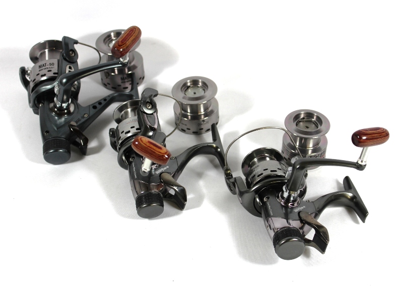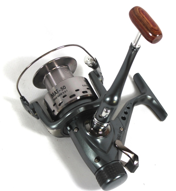 Gelochte Aluminiumweitwurfspule, anklappbare Kurbel mit edlem Holzknauf