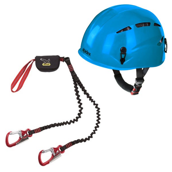 Klettersteigset Via Ferrata Premium Attac von Salewa + Alpidex Universal Kletterhelm ARGALI in turquoise blue