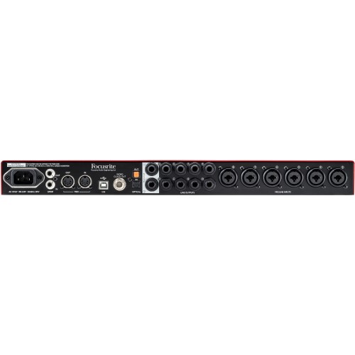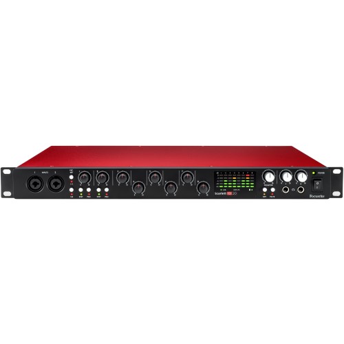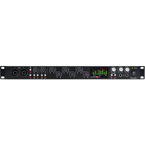 Focusrite Scarlett 18i20 2nd Gen. Focusrites Scarlett 18i20 ist der aktuellste Zugang einer neuen Generation von Mehrkanal-USB-Audio-Interfaces und überzeugt mit acht preisgekrönten Focusrite-Mikrofon-Vorverstärkern mit der legendären Focusrite Klangqualität, die extra für den Einsatz in Computer-Interfaces entwickelt wurden. Scarlett 18i20 wird mit Ableton Live Lite, der bahnbrechenden Produktions- und Performance-Software geliefert. Ebenfalls im Lieferumfang befindet sich Scarlett Plug-in Suite mit EQ, Kompressor, Gate und Hall, Novation Bass Station, ein Software-Modell des Novation Analog-Klassiker Mono-Synth sowie 1GB Samples von Loopmaster. Eingänge: