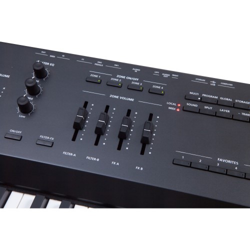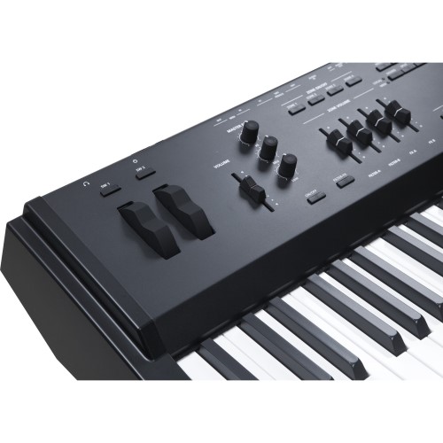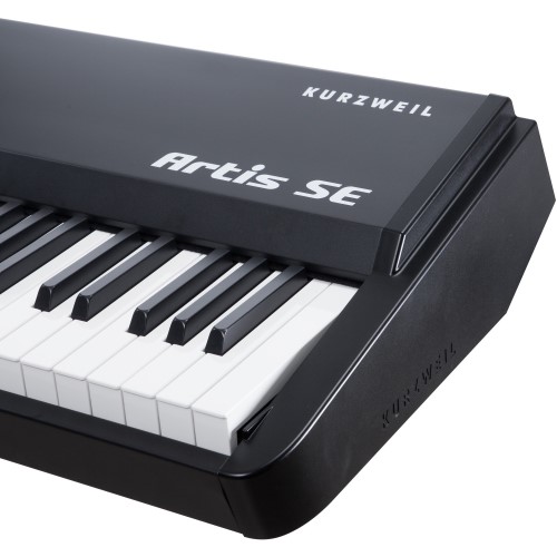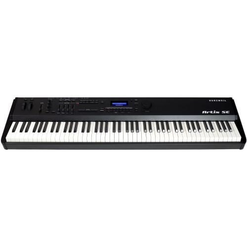 Kurzweil Artis SE Stage Piano B-Ware Warum B-Ware? Versandrückläufer mit leichten Gebrauchsspuren und beschädigter OVP. Das Stage Piano Artis SE von Kurzweil überzeugt mit völlig authentischer Klangqualität und übersichtlicher Bedienbarkeit. Dank der verbauten Fatar TP-100 mit Hammermechanik spielt sich das Piano absolut ausgewogen und natürlich. Die Oberfläche verfügt über ein Display, Bedienelemente und Befehlstaste, mit deren Hilfe aus einer Vielfalt von Piano-Klängen, Instrumenten, Multis, Programmen und Effekten gewählt werden kann. Alle Fader, Räder, Tasten usw. zur Klangeinstellung sind programmierbar. Das Artis SE verfügt über MIDI- und USB-Anschlüsse. Features: