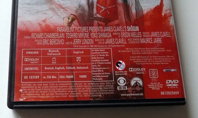 5x DVD: James Clavells SHOGUN, Richard Chamberlain, Toshirô Mifune 526 Minuten, neuwertig!