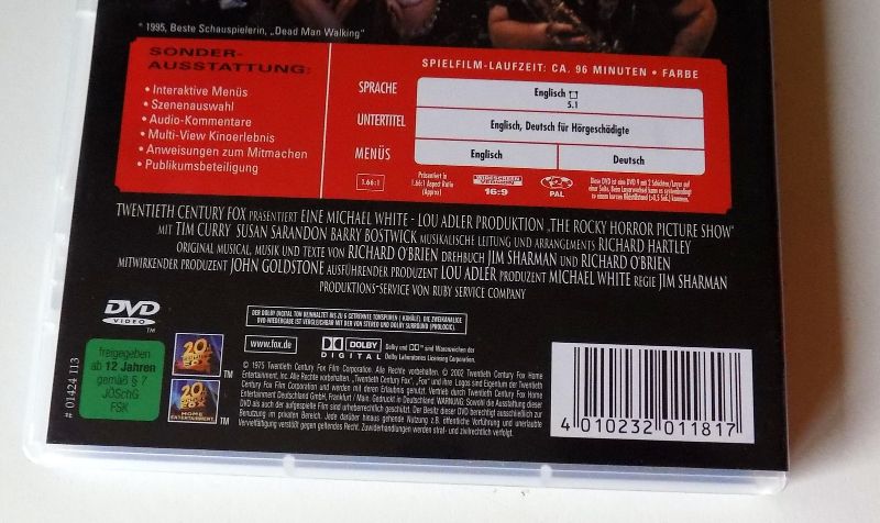 DVD: THE ROCKY HORROR PICTURE SHOW; Tim Curry, Susan Sarandon 90 Minuten, Neuwertig!