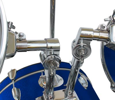 6 Spannböcke pro Seite, Chromspannreifen + Aufnahme für Tomtomhalter und Beckenhalter, justierbare Bassdrumfüße