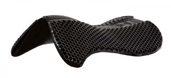 Hexagonal Soft Gelpad schwarz von ACAVALLO Das Hexagonal Soft Gelpad ist ein Durchdachtes Produkt, das drei beste Eigenschaften verbindet! Die extra dünne Sattelunterlage ist aus raffiniertem Soft-Gel-Material mit Wabenstruktur. Durch die Bewegung des Pferdes wird die Luft in den Zellen verdichtet und ausgestoßen, sodass ein Luftpolster unter dem Sattel entsteht. Die Luft kann unter dem Sattel zirkulieren und Hitzestau wird vermieden. Das Gelpad von ACAVALLO ermöglicht enorme Stoßabsorbierung zur Druckverteilung. Da spezielle Design und die sehr hohe Materialelastizität sorgen für perfekte anatomische Anpassung an Wirbelsäule und Widerrist bei einfachstem Handling beim Satteln Ihres Pferdes. Die beidseitige non-slip Oberfläche verhindert ein Verrutschen des Sattels und der Sattelunterlage ohne weitere Befestigung. Sie können das Gelpad direkt auf dem Pferderücken oder zwischen Schabracke und Sattel legen. Produkteigenschaften: