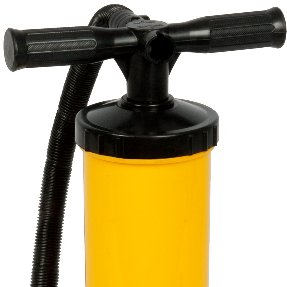 Die Doppelhub Luftpumpe mit einem Hub von 2x2 Litern befördert sowohl beim Auf- als auch Abbewegen Luft. So haben Sie Ihre Luftmatratze, das Gästebett, Ihre Wasserspielzeuge und ähnliches schnell und bequem aufgepumpt.