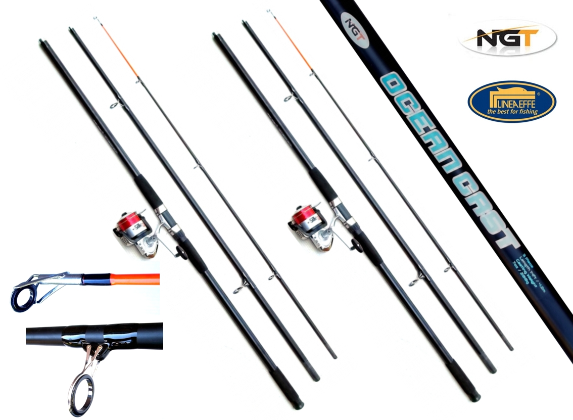 2 x NGT OCEAN SURF 420 2 x Lineaeffe Vigor 70 FD Brandungsrolle fertig bespult