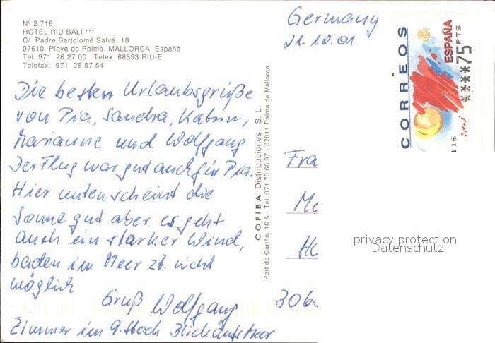 Playa de Palma Mallorca Hotel Riu Bali Spanien postalisch gelaufen 2001 Erhaltung siehe scans Alte Ansichtskarte Postkarte LiesID40