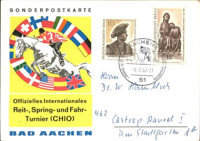Pferdesport Pferderennen Reitsport Internationales Reit- Spring Fahr-Turnier Sport postalisch gelaufen 1967 Erhaltung siehe scans Alte Ansichtskarte Postkarte Stefaufe