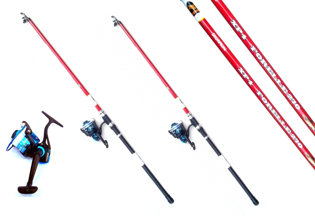 2 nagelneue Teleruten vom Angelgerätehersteller Skorpion mit und 2 passende Angelrollen von Skorpion mit Frontbremse