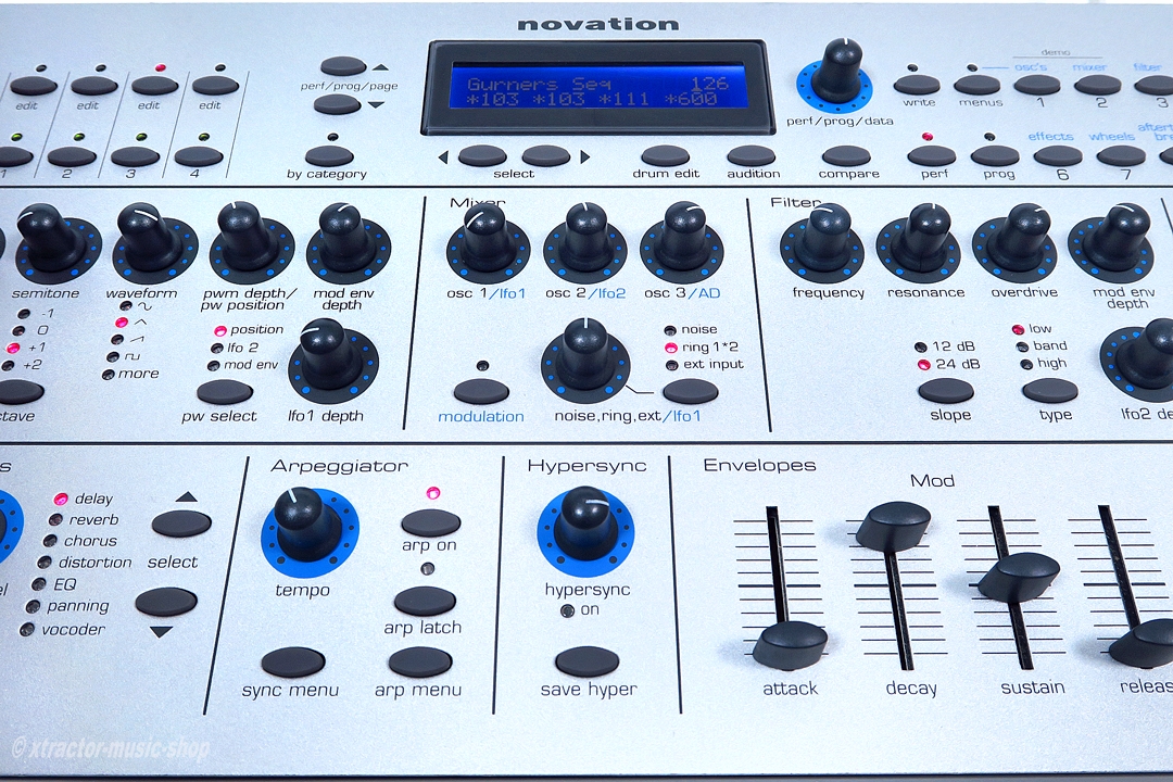 Synthesizers. Das Novation KS-Rack ist 16-Stimmig polyphon und vierfach