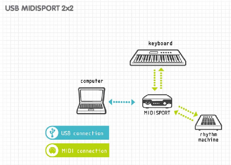 MIDISport 2x2™ bietet 32 MIDI-Eingangskanäle