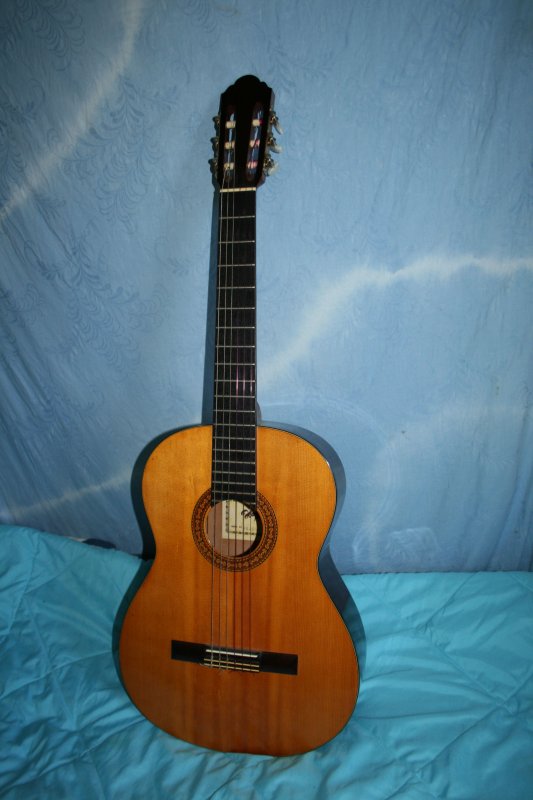 KEINE RISSE, GEBRAUCHSSPUREN-KRATZER ALLES GUT VERARBEITETE HÖLZER VOLL BESPIELBAR,GUTER KLANG,VOLL WARM AUSGEGLICHEN GESAMTLÄNGE 102,0 CM,MENSUR 65,0 CM,GRIFFBRETTBREITE 1.BUND 5,2 CM VERSICHERTER VERSAND 10,00 EURO,EU-WEIT 27,00 EURO