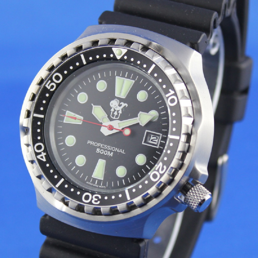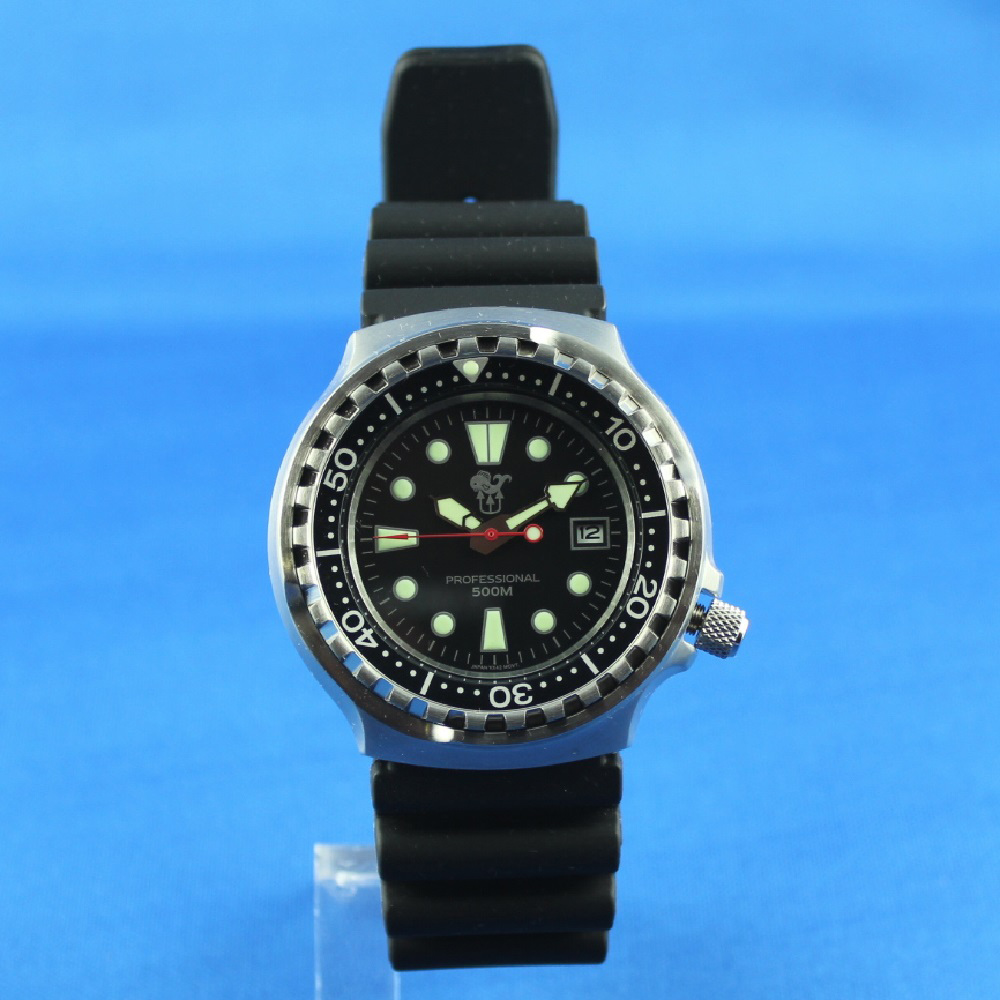 KurzbeschreibungWasserdicht bis 500m, die Herren Taucheruhr von Poseidon mit Logo auf dem Ziffernblatt, ist eine großartige Taucheruhr. Das schwarze Zifferblatt mit der Datumsanzeige lässt sich dank der lumineszierenden Anzeigen überall leicht ablesen. Einzigartiger Look, poliertes Gehäuse ein geschützter Stellring und hochwertige Verarbeitung. Das markante Gehäuse ist aus Edelstahl gefertigt und die Krone ist verschraubt. Die drehbare Lünette lässt sich auch mit Taucherhandschuhen gut bedienen. Diese Uhr aus der 500m Professionell-Serie ist benutzerfreundlich und robust. Mit der hochwertigen Verarbeitung, ihrer Zuverlässigkeit und dem einmaligen Preis setzt diese Uhr neue Maßstäbe. Bei Bestelleingang bis 14 Uhr versenden