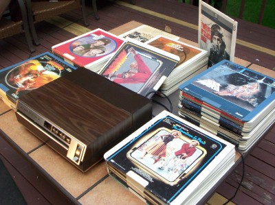 80 discs are included here, most are legendary movies. From John Waynes Alamo to Star wars Some movies are 2 discs A player that works, was just serviced, but requires a new user replaceable cartridge. $10 to $40 on Ebay