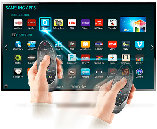 Mit der Samsung Smart Touch-Fernbedienung ist die Bedienung Ihres Fernsehers noch einfacher und intuitiver. Mit dem Touchpad können Sie zwischen den Smart Hub Panels wählen und in Webseiten scrollen. Durch einfaches Zeigen mit Pointer-Funktion der Fernbedienung, nutzen Sie die Bewegungssteuerung und bewegen den Cursor auf dem Bildschirm zur Navigation und zur einfachen Texteingabe. Nützliche Funktionstasten machen es einfach, Fernsehen, Streaming-Inhalte und heruntergeladene Programme zu sehen.