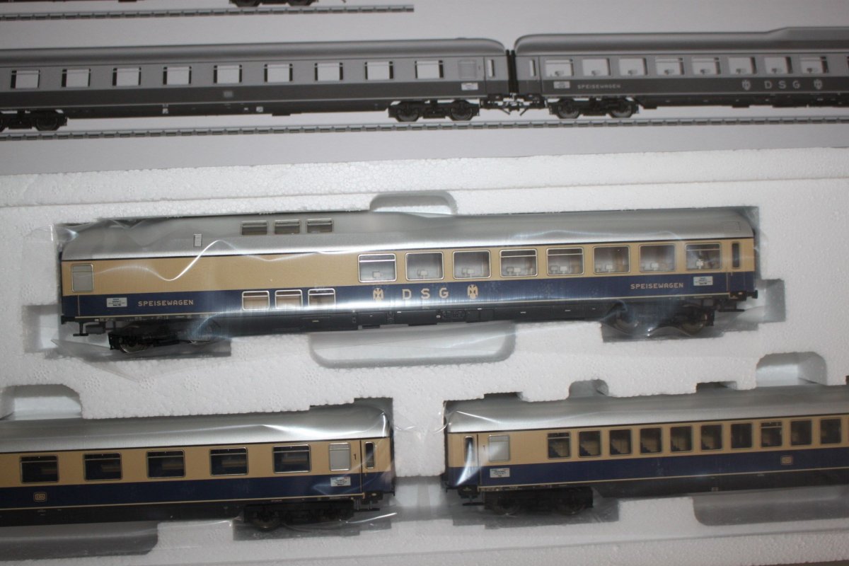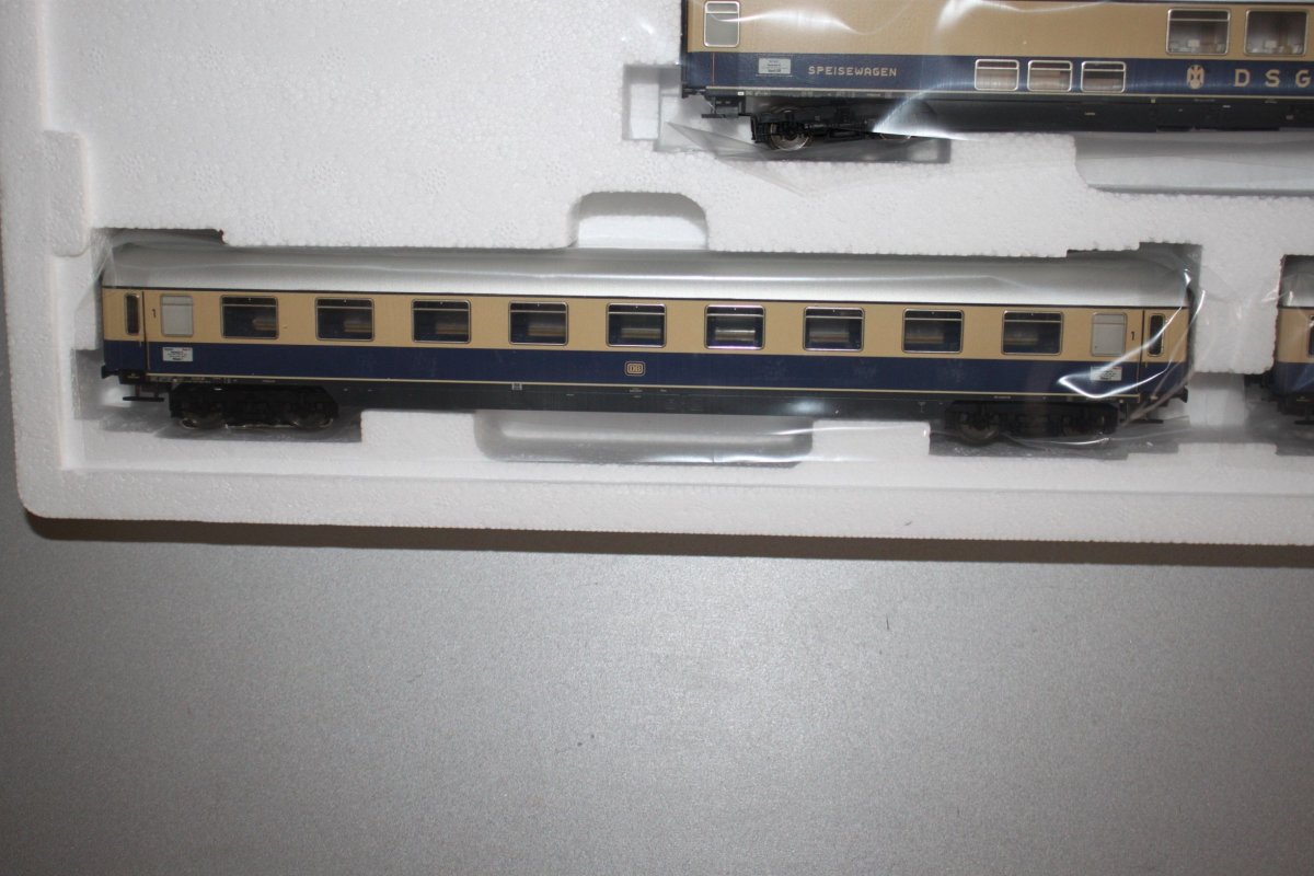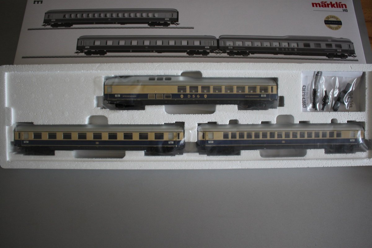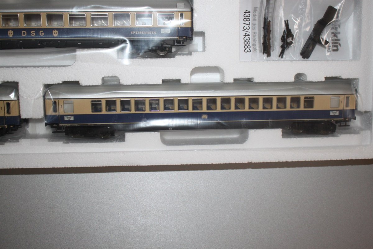 Es ist ein Märklin 43873 Schnellzugwagen-Set II Rheingold Spur H0 OVP.