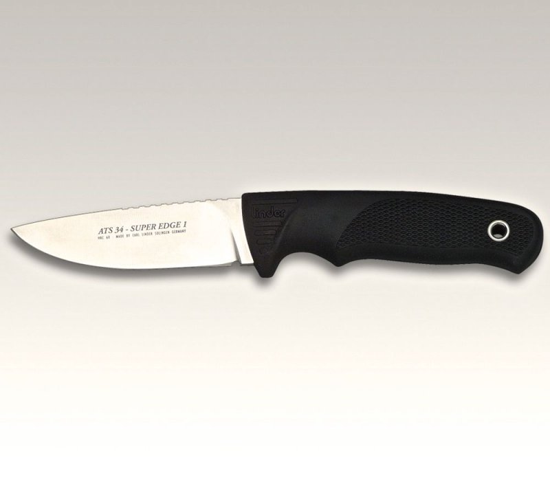 High-Tech-Messer mit Klinge aus Original ATS 34 Stahl! Vakuum-/eisgehärtet. Rockwell-Härte 60° Zäh und unglaublich schnitthaltig Jede Klinge trägt eine Seriennummer Super-Ergo-Griff aus griffigem Kraton mit Rautenprofil - sehr griffig auch mit nassen oder schweissigen Händen Das Messer klebt förmlich an der Hand Klingenlänge: 9 cm. Grifflänge: 11,9 cm Griffaterial: Kraton Gesamtlänge: 20,9 cm Klingenstärke: 4,9 mm Gewicht: 138 Gramm Vorsicht: Das Messer kommt rasierscharf aus dem Werk! Mitgeliefert wird: Sicherheitsscheide aus Kordura ummanteltem Kunststoff mit einem Klemmmechanismus, der das Messer sehr sicher in der Scheide hält In einem anderen Angebot ist dieses Messer auch mit einer Scheide aus ca. 3mm starkem Vollrindleder erhältlich