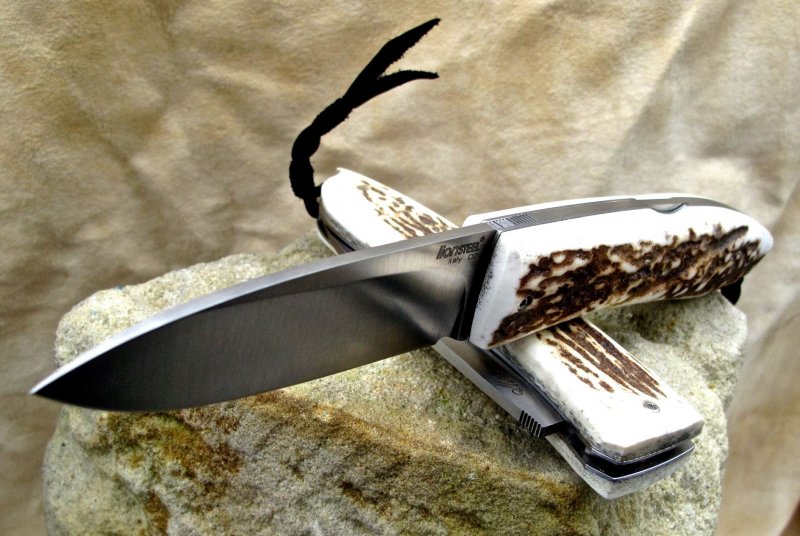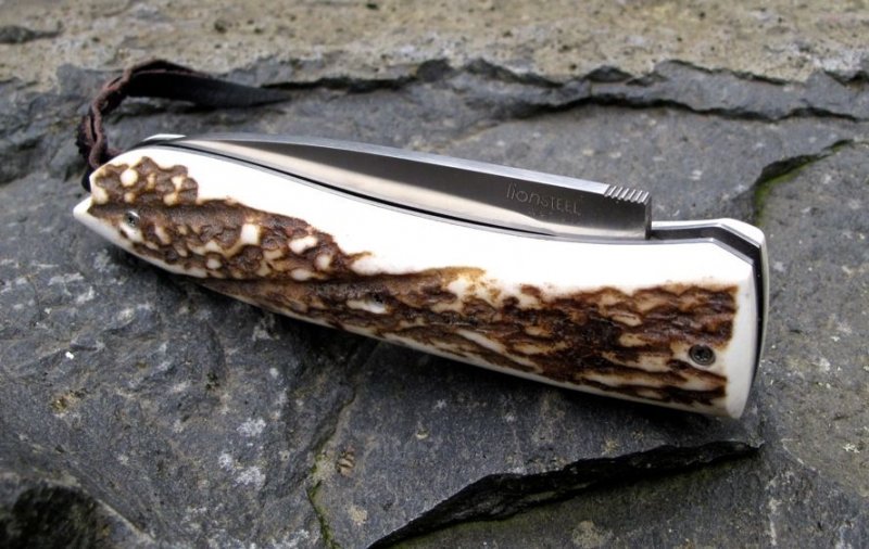 Das Opera Hirschhorn Mit ausgesuchten Griffschalen Das Opera ist seit vielen Jahren ein Klassiker im Programm von Lionsteel. Solide Stahlplatinen und eine robuste klassische Verriegelung auf dem Klingenrücken (Backlock) machen das Opera in jeder Ausführung zu einem verlässlichen Begleiter, der mit seiner schlanken Klinge auf D2 Hochleistungsstahl alle Schneidarbeiten mit Bravour erledigt. Große Ausführung Mit Fangriemen aus Leder. Der fasst sich richtig gut und sicher auch mit größeren Händen